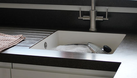 The Encore seamless sink maintains the minimalist design, slotting beautifully into the worktop without any unsightly joins. The intergrated channels provide drainage space without the need for any ugly plastic drainers.