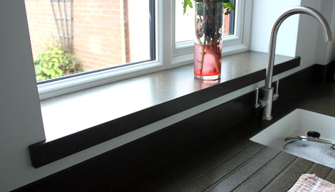 This bespoke window bottom is made from the same material used for the worktops in the rest of the kitchen, ensuring a perfect match with the rest of the design.